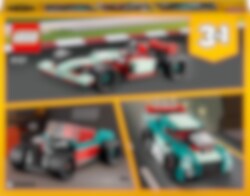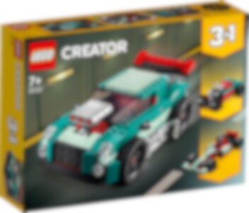 Geniet van geweldige raceactie met 3 verschillende supersnelle auto's! Kruip achter het stuur van de opgevoerde Straatracer met sidepipes en een spoiler en race door de straten. Nadat je weer wat bent afgeremd, kun je hem ombouwen en de racebaan opgaan met een racewagen, deze vervolgens weer veranderen in een hotrod of de stenen gebruiken om een totaal ander voertuig te bouwen voor nog meer supersnelle avonturen. De razendsnelle lol kan eindeloos doorgaan met deze 3in1 set!
