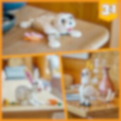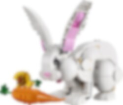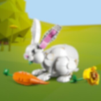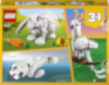 Kinderen van 8 jaar en ouder kunnen leuke verhalen bedenken met deze LEGO® Creator 3in1 Wit konijn (31133) set. De set bevat een konijn om zelf te bouwen met een verstelbare kop, poten, bek en oren en keuze uit 2 snacks: een wortel of een bloem. Non-stop fantasierijk speelplezier voor dierenliefhebbers Deze LEGO Creator 3in1 set biedt kinderen 3 verschillende bouw- en speelervaringen. Ze kunnen een speelgoedkonijn bouwen en dit vervolgens ombouwen tot een prachtige kaketoe die zaadjes eet of een schattige witte zeehond met een vis als tussendoortje. Een leuke digitale ervaring voor LEGO fans Met de LEGO Builder app kun je het model draaien, erop inzoomen en het visualiseren. Dit begeleide bouwproces helpt jongere bouwers om hun creatie tot leven te brengen op hun tablet of smartphone en geeft hen het gevoel dat ze iets bereikt hebben.