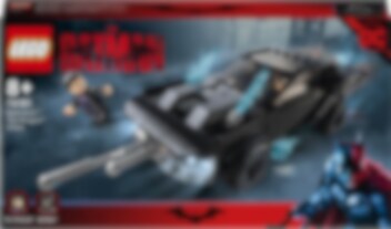 Batman scheurt in zijn geweldige Batmobile door de straten van GOTHAM CITY. Er komen blauwe vlammen uit de uitlaat wanneer onze gemaskerde held The Penguin achtervolgt. Als de superschurk zijn extra grote raket op hem richt, is het tijd om de megaprojectielen van de Batmobile af te vuren! Batman stapt uit de cockpit van zijn voertuig om de schade vast te stellen – en stapt daarna weer snel in de Batmobile op weg naar zijn volgende avontuur.