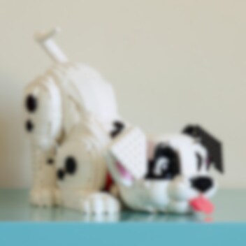 Deze bouwbare LEGO® Disney set voor volwassenen bevat een Dalmatiër puppypersonage dat ca. 22 cm hoog is als het naar voren leunt.