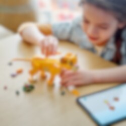 Verwen kinderen en fans vanaf 6 jaar met dit leuke LEGO® ǀ Disney Simba de Leeuwenkoning als welp (43243) bouwspeelgoed. Dit bouwbare model wordt uitgebracht ter ere van het 30-jarig jubileum van De Leeuwenkoning. De eigenwijze, jonge Simba LEGO ǀDisney dierenfiguur uit de populaire film heeft een draaibare kop en beweegbare poten en staart en wordt geleverd met een blad en 4 'beestjes' als 'voedsel'. Deze bouwbare speelset is een leuk Disney cadeau voor kinderen en filmliefhebbers dat er gewel dig uitziet in elke kamer. De set zit boordevol leuke kenmerken en kan worden gecombineerd met andere LEGO ǀ Disney bouwsets voor kinderen in het assortiment (apart verkrijgbaar). Bovendien heeft het model een handig formaat om mee te nemen en onderweg mee te spelen. Voor nog meer plezier kunnen kinderen genieten van een eenvoudig en intuïtief bouwavontuur met de LEGO Builder app. Hiermee kunnen ze inzoomen en hun modellen in 3D draaien, sets opslaan en hun voortgang bijhouden.