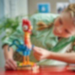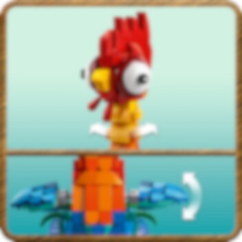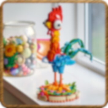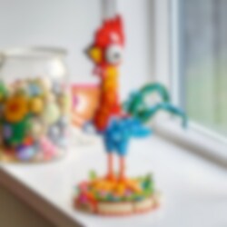 Bouw Heihei uit Disney's Vaiana en Vaiana 2! Creëer een op de film geïnspireerd displaymodel van Vaiana's kleurrijke kippenvriend, die zich een weg pikt door verschillende avonturen, maar bijna altijd met de snavel naar boven landt! Plaats Heihei op de standaard en verander zijn houding door zijn kop te draaien en zijn vleugels en staart op en neer of opzij te bewegen. Deze kip heeft altijd trek!