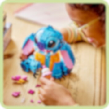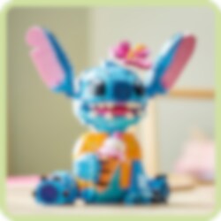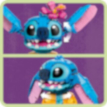 Maak vrienden met de coolste alien ooit: Stitch! Vier ohana met deze LEGO® ǀ Disney set door de schattige Stitch, gekleed in zijn leuke Hawaïaanse shirt, in elkaar te zetten en hem vervolgens mee te nemen voor een ijsje. Daarna kun je Stitch rechtop zetten, met zijn oren omhoog of omlaag, zijn hoofd naar voren of opzij en met of zonder het ijshoorntje en zijn favoriete bloem. Aloha!