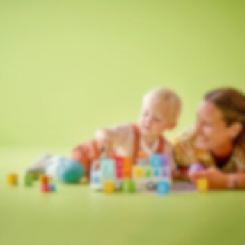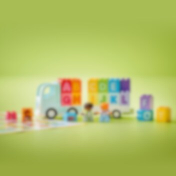 Laat peuters kennismaken met letters met de LEGO® DUPLO® Stad Alfabetvrachtwagen (10421) om te bouwen en mee te spelen. Dit creatieve ABC-speelgoed biedt volop leerplezier. Wanneer peuters de aanhanger aan de speelgoedvrachtwagen koppelen en de 2 LEGO DUPLO figuren helpen met het in- en uitladen van de stenen beginnen ze letters te herkennen, leren ze over kleuren, verbeteren ze hun taalvaardigheid en versterken ze hun fijne motoriek. Fantasierijke accessoires zijn onder andere een LEGO DUPLO boekelement en een stereo-element om leuke ABC-meezingers met ouders en peuters aan te moedigen. Dit educatieve speelgoed stimuleert peuters om creatieve verhalen te verzinnen terwijl ze in de cabine van hun speelgoedvrachtwagen klimmen en op weg gaan naar een nieuw avontuur! Geef peuters een geweldige start met LEGO DUPLO bouwspeelgoed, waarmee ze onbeperkt kunnen spelen, leren en zichzelf kunnen uiten.