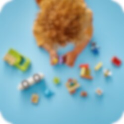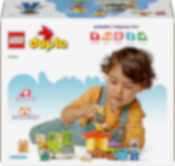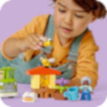 Leer peuters over de levenscyclus van zzzzeer belangrijke insecten: bijen! LEGO® DUPLO® Stad Bijen en bijenkorven is een kleurrijke bouwset waarmee peuters leren hoe deze essentiële bestuivers leven en hoe honing wordt gemaakt. Peuters geven de bloemen water om ze te laten groeien. De bijen brengen de nectar naar hun bijenkorf en maken daar een honingraat. De figuren van een oma en jongen verzamelen de honing en brengen de potten naar de markt in hun duwvrachtwagen.