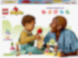 Leer peuters boodschappen doen met LEGO® DUPLO® Mijn eerste biomarkt (10983). Op deze leuke boerenmarkt kunnen kinderen situaties uit de echte wereld naspelen terwijl ze artikelen wegen op de weegschaal, betalen met speelgoedmunten van verschillende waarden en hun eten mee naar huis nemen in een schattig stoffen tasje. Educatief speelgoed vol leuke details Kinderen kunnen leren over balans terwijl ze de radijs, aardbei, citroen en watermeloen opstapelen. Alle LEGO DUPLO sets zijn ontworpen om zelfexpressie te ontwikkelen – in deze set heeft elk stuk voedsel zelfs een andere gezichtsuitdrukking om het creatieve spel tot leven te brengen! Creatief en leerzaam speelgoed voor peuters LEGO DUPLO speelgoed brengt onbegrensd speelplezier, zelfexpressie en spelenderwijs leren binnen handbereik van peuters. Kinderen en volwassenen kunnen interactief spelen als verkoper op de markt of als klant. Met DUPLO speelsets kunnen ouders en jonge kinderen waardevolle mijlpalen in de ontwikkeling delen.