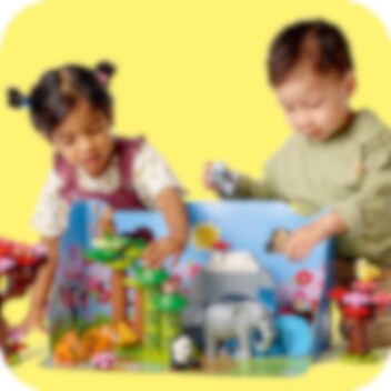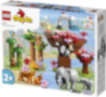 Dit LEGO® DUPLO® Wilde dieren van Azië (10974) speelgoed zit boordevol leuke details en geweldige dieren waar kinderen van 2 jaar en ouder helemaal wild van worden! Peuters en ouders gaan samen op ontdekkingsreis Kleine dierenvrienden zullen dol zijn op de vele speelmogelijkheden in deze Aziatische leefomgeving met wilde dieren. Zo vinden ze er een volwassen olifant met haar jong, panda's en tijgers, een aap, 2 vogels en 2 rode panda's, plus bamboe, een kersenbloesem en een opvouwbare 3D-speelmat. Er is zelfs een geluidssteen met realistische (dieren)geluiden. Spelenderwijs leren voor peuters LEGO DUPLO sets zijn vakkundig ontworpen met leuke verhaallijnen, vrolijke kleuren, diverse personages en vele details om jouw kleine leerling een GROTE start in het leven te geven.