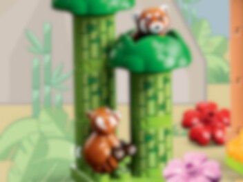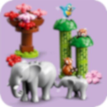 Peuters die van dieren houden, worden helemaal wild van deze Aziatische natuurset. De set zit boordevol met de mooiste en leukste dieren: een volwassen olifant met haar jong, panda's en tijgers, een aap, 2 vogels en 2 rode panda's. Met bamboe, een kersenbloesem en een 3D-junglespeelmat. Er is zelfs een geluidssteen met realistische (dieren)geluiden.