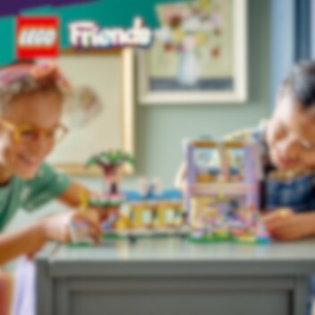 Hondenliefhebbers vanaf 7 jaar kunnen hun eigen puppyverhalen bedenken met dit LEGO® Friends Honden reddingscentrum (41727). De set bevat alles wat kinderen nodig hebben om voor de schatjes te zorgen die wachten op adoptie. Dierenliefhebber Autumn weet dat haar vriend Zac ook dol is op honden, dus vraagt ze hem mee. Kinderen zullen de personages graag helpen met het wassen, verzorgen en voeren. Er zijn ook veel ruimtes om te spelen, waaronder een trainingsgedeelte en een glijbaan. Dankzij de modulaire opzet kunnen kinderen hun reddingscentrum aanpassen door de kennels en de receptie anders in te delen. Nog meer speelplezier Kinderen kunnen genieten van een eenvoudig en intuïtief bouwavontuur met de LEGO Builder app. Hiermee kunnen ze inzoomen en hun modellen in 3D draaien, sets opslaan en hun voortgang bijhouden. Welkom bij de volgende generatie in Heartlake City Kinderen kunnen vrienden maken, leuke locaties ontdekken en levensechte avonturen naspelen in het LEGO Friends universum.