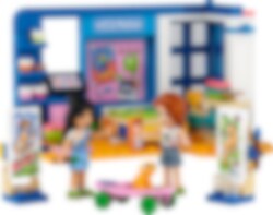 Kunstzinnige kinderen vanaf 6 jaar kunnen hun hart ophalen met deze LEGO® Friends Lianns kamer (41739) bouwset met tekenbureau, erker en een verborgen bed. Laat ze met plezier de vriendschap tussen de energieke Liann en de rustige Autumn naspelen. Fantasierijk spelen is gemakkelijk als kinderen doen alsof ze een schilderij maken van Lianns gekko, Popcorn. De set bevat diverse accessoires om de creativiteit te stimuleren met knutselmaterialen zoals verftubes, paletten en schildersezels. Ook zijn er speelgoeddonuts, bekers, stripboeken, een skateboard, mobiele telefoon, pen en een terrarium voor Popcorn de gekko. Een leuke bouwervaring Gun je kind een eenvoudig en intuïtief bouwavontuur met de LEGO Builder app. Hiermee kunnen kinderen inzoomen en hun modellen in 3D draaien, sets opslaan en hun voortgang bijhouden. Een nieuwe generatie in Heartlake City Kinderen kunnen vrienden maken, leuke locaties ontdekken en levensechte avonturen naspelen in het LEGO Friends universum.