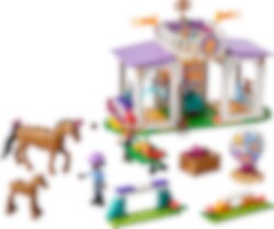 Kinderen vanaf 4 jaar die van paarden en dierenverzorging houden, kunnen allerlei fantasierijke verhalen bedenken met deze LEGO® Friends Paardentraining 41746 bouwset. Deze speelgoedset helpt kinderen te leren bouwen en bevat minipoppetjes van Aliya en Mia plus 2 paardenfiguren en accessoires voor creatief speelplezier. Kinderen kunnen doen alsof Aliya en Mia, de moeder van haar vriendin, vrienden worden dankzij hun gedeelde liefde voor paarden. Inspireer beginnende bouwers LEGO 4+ sets zijn ontworpen voor een snelle en leuke bouwervaring. Ze bevatten een handige startsteen – een stevige basis waarop kinderen de scène kunnen bouwen. Laat de LEGO Builder app jou en je kind begeleiden tijdens het intuïtieve bouwavontuur. Zoom in en draai modellen in 3D, bewaar sets en houd de voortgang bij. Welkom bij de volgende generatie in Heartlake City Kinderen kunnen vrienden maken, leuke locaties ontdekken en levensechte avonturen naspelen in het LEGO Friends universum.