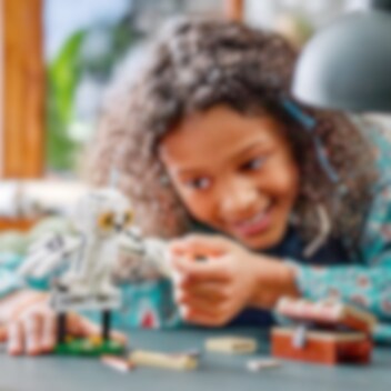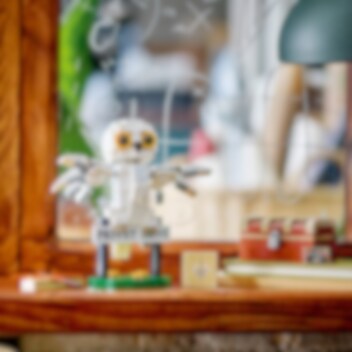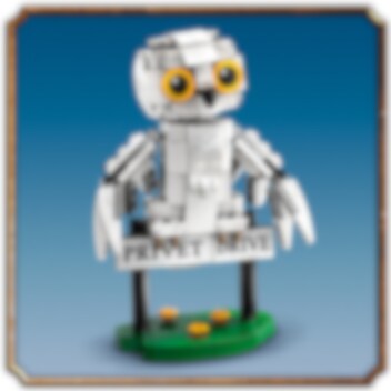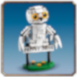 Bouw je eigen betoverende model van de sneeuwuil Hedwig om mee te spelen en neer te zetten! Maak Harry's huisdier in LEGO® stijl en pas haar kop, vleugels en staart aan voor schattige poses. Zet Hedwig neer op het straatnaambord van de Ligusterlaan (Privet Drive), waar Harry Potter bij de familie Duffeling woonde. En wat zit er in Harry’s koffer? Een portret van Harry en zijn ouders, het boek De Geschiedenis van de Toverkunst en een toverstok!