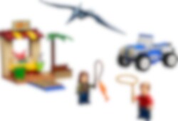Deze geweldige set, geïnspireerd op de film Jurassic World Dominion, bevat alles wat je nodig hebt voor urenlang speelplezier boordevol actie. De set bestaat uit een van stenen gebouwde haven, viskraampje en een buggy, minifiguren van Owen Grady en Maisie met een vishengel en lasso, en een figuur van een Pteranodon. De achtervolging kan beginnen!