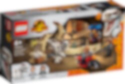 Bereid je voor op speelplezier boordevol actie met deze geweldige set, geïnspireerd op de film Jurassic World Dominion. De set bestaat uit een markt met een muur waar de boze Atrociraptor en een coole motorfiets doorheen kunnen beuken, een gevechtsarena voor 2 kleine dinosaurusfiguren plus minifiguren van Owen Grady en Rainn Delacourt.