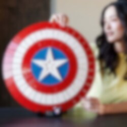 Het schild van Captain America is een van de bekendste voorwerpen uit het Marvel Cinematic Universe. Nu kun je dit symbool van de strijd van goed tegen kwaad zelf in huis halen. Dit schijfvormige model van 3128 onderdelen heeft een diameter van ca. 47 cm en staat op een standaard met een naamplaatje. Om je pronkstuk nog interessanter te maken, is er ook een minifiguur van Captain America inbegrepen.