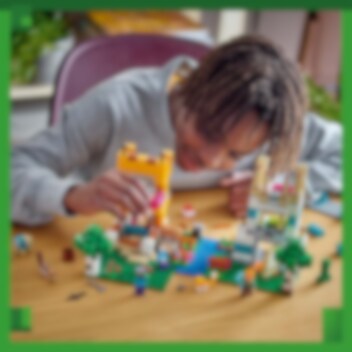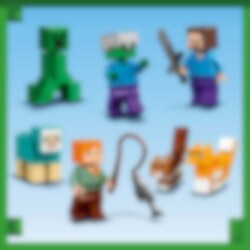 Breng je Minecraft® vaardigheden naar de echte wereld met deze megamix van Minecraft stenen, figuren en accessoires! Wat ga je als eerste bouwen: de Riviertoren, waar Steve en Alex het fort verdedigen tegen de zombie en Creeper? Het Kattenparadijs, waar ze voor katten zorgen terwijl ze een Creeper opblazen met TNT? Of ga je zelf een geweldig Minecraft avontuur bedenken?