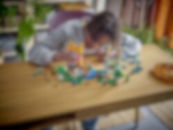 LEGO® Minecraft® De Crafting-box 4.0 (21249) biedt Minecraft spelers van 8 jaar en ouder 2 opvallende speelsets en eindeloos vrij bouwplezier. 2-in-1 Minecraft set en bron van creativiteit Deze zeer veelzijdige speelset biedt kinderen 2 verschillende omgevingen om te bouwen: de Riviertoren, een fortachtig bouwwerk dat kan worden gebruikt ter verdediging tegen aanvallen van een zombie en Creeper, of het Kattenparadijs – een groot huis in de vorm van een kat met daarnaast een kattenspeeltuin. Deze bouwwerken, de voorbeeldmodellen en de eindeloze zelfbedachte modellen worden bevolkt door bekende figuren en mobs uit de game, waaronder Steve, Alex, een zombie, Creeper, katten en schapen. Een groot aantal kenmerken en functies van Minecraft, waaronder exploderende TNT, maken deze geweldige speelset nog realistischer. Voor extra digitaal plezier kunnen bouwers inzoomen en sets in 3D draaien en hun voortgang bijhouden met de leuke, intuïtieve LEGO Builder app.