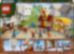 De Ghast-ballon aanval op het dorp (21273) is een videogamebouwset gebaseerd op een scène uit de Minecraft® film. Dit LEGO® Minecraft speelgoed voor kinderen biedt explosieve actie wanneer er een aanval wordt gelanceerd vanuit een ballon. Deze LEGO set met gamingthema is een geweldige cadeautip voor jongens en meisjes vanaf 10 jaar! De set bevat populaire personages uit de videogame: Steve, Natalie, Dawn, 2 piglins, een Ghast-ballon, een dorpeling, een kuiken en een verstelbare figuur van een ijzergolem. De ballon heeft ruimte voor de piglins en is voorzien van een schijfschieter. In het dorp staan marktkraampjes, Steve's gefrituurde kiprestaurant, zijn craftinghut en een fontein, die kinderen kunnen laten 'ontploffen' met behulp van eeningebouwde functie. Op het dak van het restaurant staat een groot kippenmodel met een leuke eierlegfunctie. Voor digitaal plezier kunnen kinderen de LEGO Builder app gebruiken om in te zoomen, modellen in 3D te draaien en hun voortgang bij te houden.