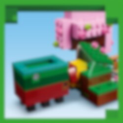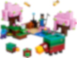 De kersenbloesemtuin (21260) is een praktische speelset uit de videogame en de eerste LEGO® set met figuren en onderdelen uit het Minecraft® kersenbloesembioom. Het is een geweldig cadeau voor Minecraft spelers en kinderen vanaf 8 jaar die genieten van natuur- en dierenspeelsets – en het graag opnemen tegen zombies! Dit is de eerste LEGO Minecraft speelset met het heldenpersonage Sunny. Kinderen helpen Sunny bij het verzorgen van de kersenbloesemtuin die uit 2 felgekleurde bomen, een bruggetje over een beekje en een zandtuin met een sierpot en zwartsteen bestaat. Er zijn 2 bijen, een volwassen Sniffer – een vriendelijke mob uit het spel – en een Baby Sniffer, plus een Sniffer-ei. Kinderen gebruiken de snuffelfunctie van de volwassen Sniffer om met zijn snuit een zeldzaam zaadje op te graven. Voor nog meer actie kunnen ze een vijandige zombie in de tuin afweren. Er is ook digitaal plezier als bouwers de intuïtieve LEGO Builder app gebruiken.