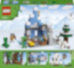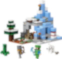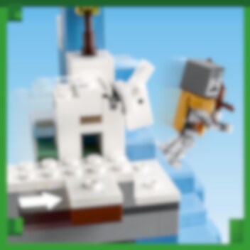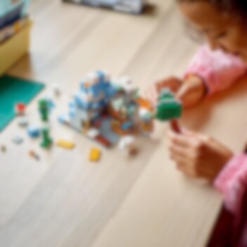 LEGO® Minecraft® De IJsbergtoppen (21243) zit boordevol kenmerken en functies om spelers vanaf 8 jaar bergen Minecraft plezier en actie te bieden. Volop mogelijkheden om te bouwen, strijden, verkennen en op te blazen! Minecraft spelers zullen de IJsbergtoppen en het Taiga bos direct herkennen en dolgraag hun Minecraft vaardigheden willen gebruiken om steenkool, ijzer en smaragderts te delven dat onder het ijs ligt. Kinderen moeten echter eerst een veilig onderkomen bouwen en eten verzamelen. Als een Creeper en een Verdwaalde te dichtbij komen, kunnen ze ontsnappen via de gevaarlijke druipsteengrot, TNT gebruiken om de berg op te blazen of de geit gebruiken om de vijandige mobs van de klif te gooien! Verschillende leuke functies en een scala aan authentieke accessoires zorgen ervoor dat de Minecraft avonturen nooit eindigen. Voor extra digitaal plezier heeft de LEGO Builder app intuïtieve zoom- en draaifuncties waarmee kinderen hun model kunnen visualiseren terwijl ze het bouwen.