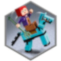 LEGO® Minecraft De paardenstal (21171) combineert al het plezier en de avonturen van de populaire online game met de eindeloze creatieve mogelijkheden van LEGO stenen en het verzorgen van paarden.Creatief speelplezier met de Minecraft paardenstalKinderen die graag bouwen en hun fantasie de vrije loop laten, zullen deze veelzijdige LEGO Minecraft set geweldig vinden. De deuren van de stal kunnen open en binnenin vind je allerlei authentieke Minecraft details, zoals de gouden wortel en het diamanten harnas. Er zijn paarden om te voeren en te verzorgen, een hindernisbaan die je kunt ontwerpen en een skelettenruiter waar je het tegen op kunt nemen! Deze praktische bouw- en speelset is op verschillende manieren in te delen. Een ideaal cadeau voor kinderen – zowel Minecraft spelers als paardenliefhebbers.