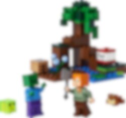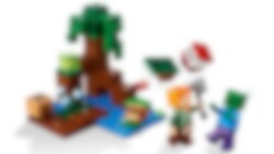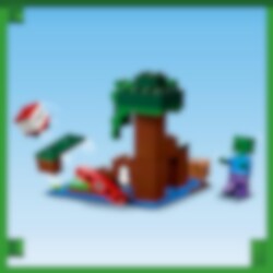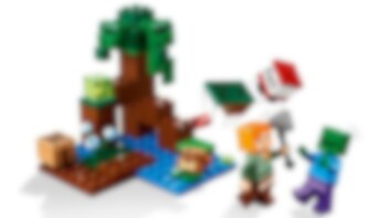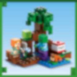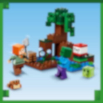 Verras Minecraft® spelers van 7 jaar en ouder met een moeras vol avontuur, actie en creativiteit met LEGO® Minecraft Het Moerasavontuur (21240). Superleuk Minecraft speelgoed om te bouwen en te ontdekken Geef kinderen de creativiteit van Minecraft in handen met deze fysieke versie van het gevaarlijke moeraslandschap. Dit veelzijdige speelgoed bevat de bekende Minecraft favoriet Alex die door de modder en mangroven reist op een Minecraft avontuur. Naast mogelijkheden om creatief te bouwen, zijn er 2 vijandige mobs om het tegen op te nemen – een zombie en een slijm, maar ook een vriendelijke kikker die de actie observeert vanaf een lelieblad. Kinderen helpen Alex haar bijl te gebruiken en een hendel te bedienen om TNT tot ontploffing te brengen en elke aanval af te weren. Voor extra digitaal plezier heeft de LEGO Builder app intuïtieve zoom- en draaifuncties waarmee kinderen hun model kunnen visualiseren terwijl ze het bouwen.