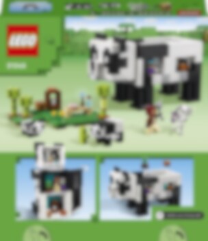 Als je van Minecraft® panda's houdt, zul je dit pandahuis met 3 verdiepingen geweldig vinden! Open de achterkant om de verschillende kamers te bekijken, elk gevuld met coole accessoires voor creatief plezier. Zin in iets nieuws? Herbouw je pandahuis zodat de panda zit of op alle 4 de poten staat! Ga samen met een onderzoeker de bamboejungle in. Voer taart aan een panda en babypanda – maar kijk uit voor het skelet met de kruisboog!