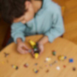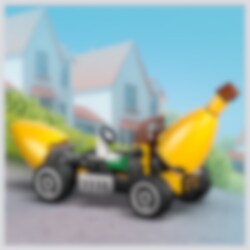 Verwen een Minions fan met de LEGO® Verschrikkelijke ikke 4 Minions en bananenauto (75580). Dit creatieve speelgoed voor kinderen bestaat uit 4 Minions, een kleine speelgoedauto en accessoires. Een leuk cadeau voor jongens en meisjes vanaf 6 jaar en Minions fans. Op zoek naar een LEGO Minions set, kleine speelgoedauto of een leuk cadeautje? Deze Minions bananenauto heeft een afneembare motor, plus 4 Minions en accessoires. Mega Minion Dave kan met de ene hand de motor optillen en met de andere een gewichthefstang. Mel schildert een banaan, terwijl geheim agent AVL Minion Tim voorbij vliegt met draaiende rotorbladen op zijn hoofd en een afstandsbediening in zijn hand. Op de grond staat zijn werkstation, gevuld met speciaal gereedschap, waaronder een röntgenbril. Pit Crew Minion Ron heeft luierdienst bij de commode. Hij heeft zelfs een pistool voor het afschieten van vieze luiers. Bouwers kunnen digitaal plezier beleven door in te zoomen en sets te draaien in de LEGO Builder app.