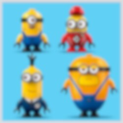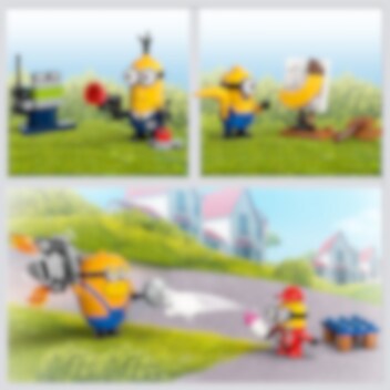Doe lekker maf met deze groep Minions! Mega Minion Dave houdt in de ene hand een gewichthefstang vast en in de andere een automotor. De creatieve Mel schildert een portret van een banaan! Pit Crew Minion Ron bestuurt de bananenauto terwijl geheim agent AVL Tim voorbij vliegt met draaiende rotorbladen op zijn hoofd en de afstandsbediening in zijn handen. Wat voor leuks gaan ze hierna doen?