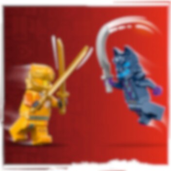 Met het ninjaspeelgoed Arins strijdmecha (71804) kunnen kinderen vanaf 4 jaar leren bouwen terwijl ze hun ninjahelden helpen om hun drakenvrienden te redden. Dit rollenspel-actiespeelgoed bevat een indrukwekkende mechafiguur die kinderen inspireert om spannende avonturen uit seizoen 2 van de tv-serie NINJAGO® Dragons Rising na te spelen. Deze LEGO® set is inclusief 2 minifiguren: Arin met een katana en een Wolvenmasker strijder met een zwaard. Arin past in de verstelbare mechafiguur die een groot zwaard en een draaiend mes vasthoudt, terwijl de Wolvenmasker strijder kan vliegen in een zweefvliegtuig met verstelbare vleugels, een schijfschieter en 2 speren. Er is ook een bouwbare kristallen grot met daarin de Hamer van Verbrijzeling en een wapenrek met 2 gouden katana's. Dit ninjaspeelgoed is ontworpen om kinderen vanaf 4 jaar het plezier van bouwen met LEGO stenen te laten ervaren. De set bevat een startsteen: een gedeeltelijk gebouwde basis waarmee kinderen snel en vol vertrouwen kunnen bouwen.