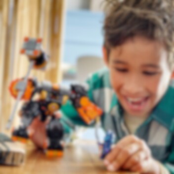 Kinderen vanaf 7 jaar kunnen verhalen uit seizoen 2 van de NINJAGO® Dragons Rising tv-serie naspelen met Cole's elementaire aardemecha (71806). Deze coole mecha heeft verstelbare armen en benen die naar alle kanten kunnen worden gedraaid, plus Cole's zware pantser, een grote hamer en een cockpit waarin een minifiguur kan worden geplaatst. Met deze splinternieuwe aanpasbare mecha kunnen kinderen hun eigen mecha ontwerpen! De afneembare benen, armen en borst kunnen worden gecombineerd met onderdelen van 2 andere mecha: Sora's elementaire techmecha (71807) en Kai's elementaire vuurmecha (71808) (apart verkrijgbaar). Kinderen kunnen urenlang plezier beleven terwijl ze onderdelen mixen en matchen om een unieke actiefiguur te maken. Het ninjaspeelgoed wordt geleverd met 2 minifiguren: Cole met een katana en een Wolvenmasker strijder met een zwaard. De set kan ook worden gemaakt met behulp van de LEGO® Builder app, die jou en je kind begeleidt op een eenvoudig en intuïtief bouwavontuur.