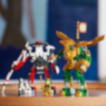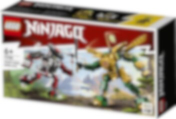 Kinderen van 6 jaar en ouder zullen het geweldig vinden om van alles over de fantasiewereld van LEGO® NINJAGO® te leren door te bouwen en spelen met Lloyd's Mech Battle EVO (71781). De speelset bevat 2 verstelbare mecha, beiden voorzien van coole wapens voor spannende confrontaties. Kinderen kunnen Lloyd's mecha versterken met een gouden harnas en vleugels om hem aan de overwinning te helpen. Cool speelgoed voor kinderen – met een extra beloning! Deze LEGO NINJAGO duelset wordt geleverd met 2 minifiguren: Gouden Lloyd en zijn tegenstander Bottenstrijder, die in de cockpits van hun verstelbare mecha kunnen worden geplaatst om epische confrontaties aan te gaan. Als ze in de uitdaging slagen, worden kinderen beloond met een verzamelvaandel voor Doorzettingsvermogen. Een leuke digitale ervaring voor LEGO fans Laat de LEGO Builder app jou en je kind begeleiden tijdens het eenvoudige en intuïtieve bouwavontuur. Zoom in en draai modellen in 3D, bewaar sets en houd je voortgang bij.