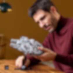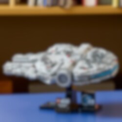 Roep al je creatieve krachten op om het beroemdste ruimteschip in het Star Wars universum te bouwen: Han Solo's Millennium Falcon. Leg direct herkenbare details vast van het ruimteschip zoals het te zien was in Star Wars: A New Hope. Plaats de Millennium Falcon in een dynamische hoek op de standaard en voeg het naamplaatje en de speciale jubileumsteen ter ere van 25 jaar LEGO®Star Wars toe om de geweldige blikvanger af te maken.