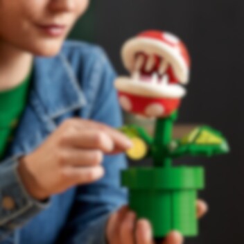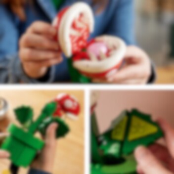 Maak een Piranha Plant uit de wereld van Super Mario na in LEGO® stijl! Bouw de gevaarlijke plant die uit een buis 'groeit' en beweeg de kop, bek, stengel en bladeren om verschillende poses te creëren. Dit leuke model zal cool staan in je huis ofkantoor. O, en let op de meegeleverde muntelementen. "Waar zijn die voor?" horen we je vragen. Bouw de Piranha Plant en kom erachter!