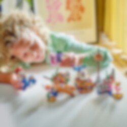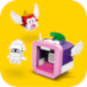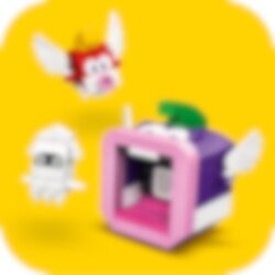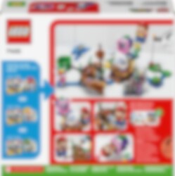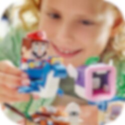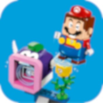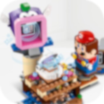 Zoek naar schatten in de onderwaterwereld! Rijd op een Dorrie met LEGO® Mario, LEGO® Luigi of LEGO® Peach (figuren niet inbegrepen) en verken het scheepswrak. O nee! De schatkist is op slot, dus je moet de sleutel vinden. Kijk onder de scheepsmast, maar laat je niet oppeuzelen door de Cheep Chomp! Draai aan het platform om de schelp te openen en het sleutelblok te onthullen. Open de schatkist en pak de edelsteen!