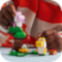 Ga met roze Yoshi en gele Yoshi mee op een picknick in het bos! Verzamel appels uit de boom, doe ze in de mand en zorg voor het Yoshi-ei. Spring op de actietag met LEGO® Mario, LEGO® Luigi of LEGO® Peach (interactieve figuren niet inbegrepen) om een digitaal ei te bemachtigen en schommel de figuur als een baby om het uit te laten komen. Neem de pasgeboren digitale Yoshi vervolgens mee op avontuur!