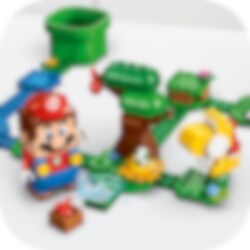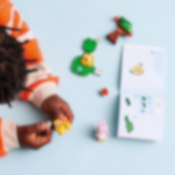 Laat het rollenspel beginnen met Yoshi's eigenaardige woud met dit LEGO® Super Mario bouwspeelgoed voor kinderen (71428) vanaf 6 jaar. Dit coole cadeau voor gamers bevat roze Yoshi en gele Yoshi LEGO Super Mario speelgoedfiguren, plus een bouwbaar bos met een appelboom en een Yoshi-ei element. Help de Yoshi's om appels uit de boom te verzamelen, doe ze in een mand en zorg voor het Yoshi-ei. Voeg voor interactief spelen een LEGO® Mario, LEGO® Luigi of LEGO® Peach figuur toe uit een LEGO Super Mario startset (71360, 71387 of 71403 – elk apart verkrijgbaar). Als een interactieve figuur op de actietag springt, verschijnt er een ei op het digitale scherm. Wieg de figuur als een baby om het digitale ei uit te broeden en kijk welke Yoshi jeop het buikscherm krijgt. Spring en draai dan om de stem van de Yoshi te activeren. Je vindt de bouwinstructies voor deze uitbreidingsset in de LEGO Super Mario app, die ook inspiratie biedt voor verschillende manieren om te bouwen en te spelen.