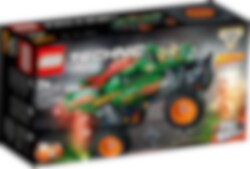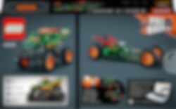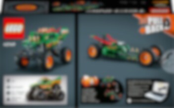 Denk je dat je opgewassen bent tegen Monster Jam? Het is tijd om je vaardigheden op de proef te stellen met de LEGO® Technic Monster Jam Dragon set. Bouw de truck met zijn scherpe punten, hoorns en vlammende details. Trek hem vervolgens naar achteren en kijk hoe hij ervandoor schiet – of doe coole stunts zoals een echte deelnemer! Als het tijd is voor iets nieuws, bouw je de truck om tot een Krokodillenbuggy.