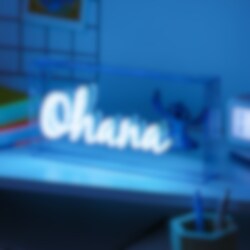 Breng sfeer in je kamer met deze charmante neon LED-lamp met het favoriete woord van Stitch: “Ohana”. De lamp geeft een mooie blauwe gloed en is perfect voor alle fans van Stitch. Je kunt hem op een tafel zetten of aan de muur hangen om een unieke en gezellige sfeer te creëren.