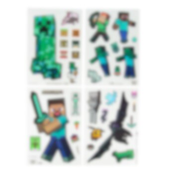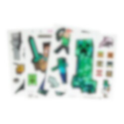 Een set van 35 raamstickers, verdeeld over 4 vellen met een Minecraft-thema. Creëer je eigen Minecraft-scènes op het raam met deze stickers. Grootte: tussen 2 tot 17 cm.