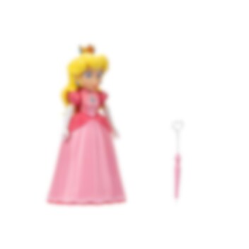 Verzamelfiguur van prinses Peach uit de Super Mario-serie. Peach komt met haar mooie paraplu en ze heeft 8 stuks bewegende onderdelen op het lichaam. Peach is 13 cm groot en is een officieel gelicenseerd product.