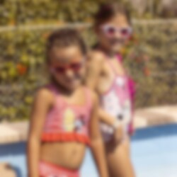 De zonnebril is ongeveer 13 cm breed en geschikt voor de meeste kinderen van 3 tot 7 jaar. Gemaakt van lichtgewicht kunststof dat prettig zit zonder te knellen.