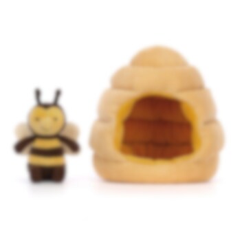 Betoverende pluche knuffel die een bij in een bijenkorf voorstelt. Dit zal de beste vriend worden van de persoon die van pluche knuffels en bijen houdt.