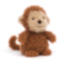 Een oorspronkelijk en pluizig aapje met een charmant rond lichaam. Met een licht krullende warrige vacht in kastanjebruin, beige gezicht, kleine schattige oren, een vrolijke zwaai van de lange staart en hoogvliegende dromen. Deze kleine vriend houdt ervan om geknuffeld te worden, en met zijn schattige kleine pootjes, aaibaar zacht lichaam en lieve uitdrukking, zeggen niet veel mensen daar nee tegen. Deze kleine schat kan bijna overal mee naartoe op het volgende avontuur of een rustig knuffelmoment en wil graag helpen troosten en ondersteunen wanneer dat nodig is. Handwas indien nodig.