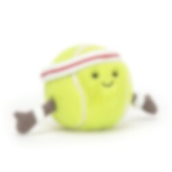 Hier is een leuke en sportieve knuffel in de vorm van een vrolijke tennisbal. Het is een echte blikvanger met zijn fluweelzachte en opvallende gele vacht, geborduurde stiksels en bijpassende hoofdband en polsbandjes. Een lieve kleine vriend of mascotte die twee duimen opsteekt met een gelukkige glimlach. De perfecte partner voor alle tennisliefhebbers. Indien nodig kan het in de wasmachine worden gewassen op 30°C, fijnwas en opgehangen om te drogen.