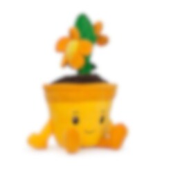 Deze speelse knuffel stelt een oranje bloempot in kawaii-stijl voor, met een schattig gezichtje en een klein bloemetje bovenaan. De warme kleur en de zachte vormen maken het figuur zowel lief als opvallend.