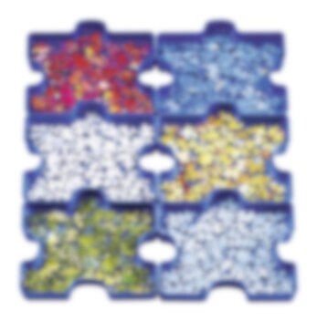 Goed hulpmiddel voor degenen die graag puzzelen. Het pakket bevat 6 stuks. puzzelvormen die elk tussen de 300 en 1000 stukjes bevatten.