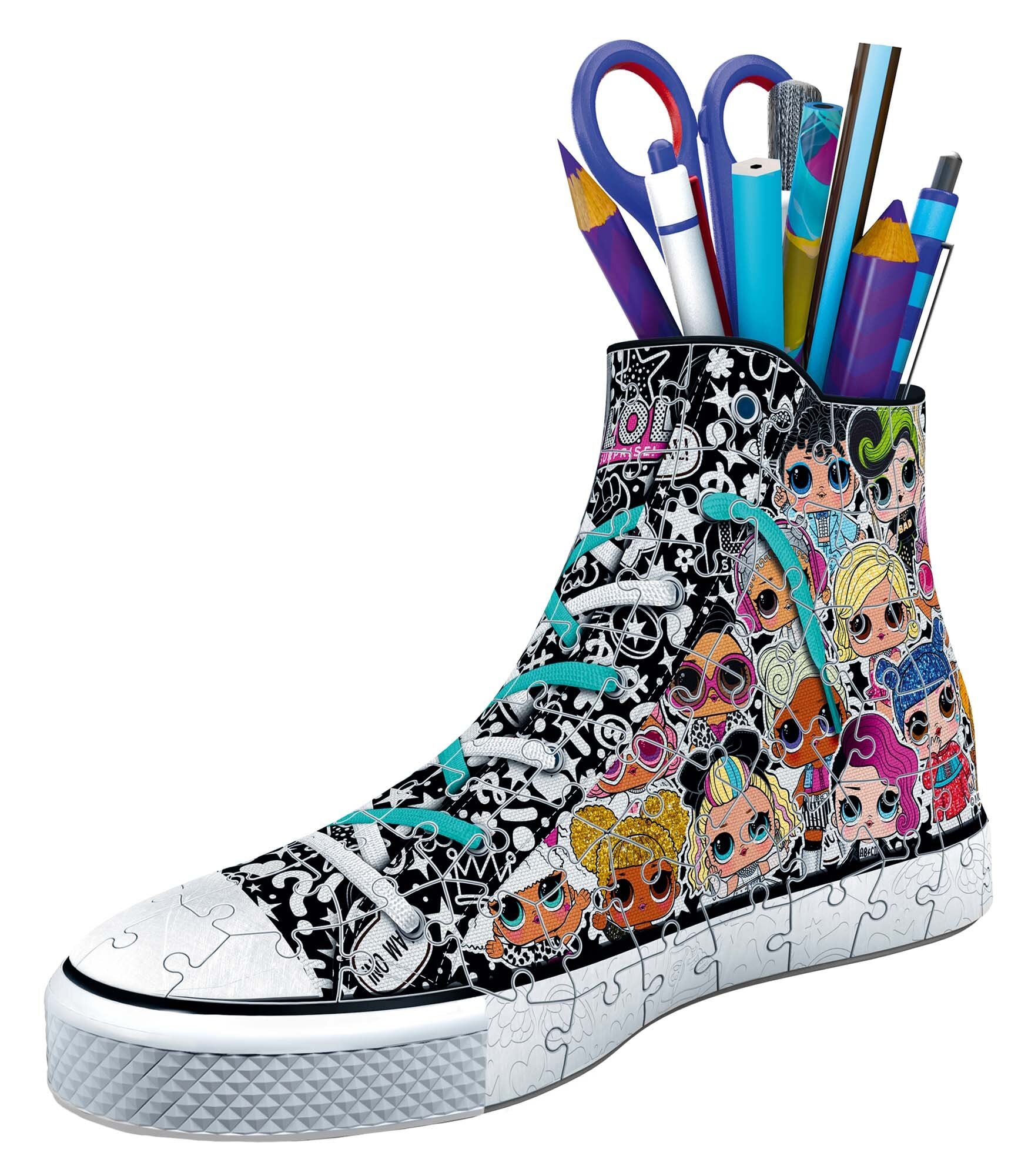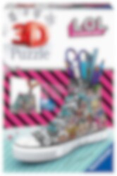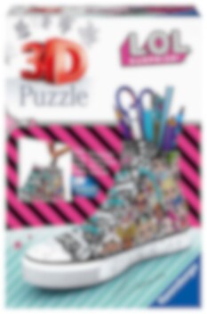 3D-puzzel in de vorm van een coole sneaker met een LOL Surprise-motief die als potloodhouder op je bureau kan worden gebruikt als hij klaar is. De 3D-puzzel is ca. 21 x 12 x 8 cm groot. Voor deze puzzel is geen lijm nodig, gewoon bouwen.