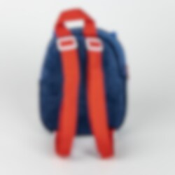 De schouderbanden zijn verstelbaar en de rugzak meet ongeveer 22 × 18 × 8 cm – precies goed voor een knuffel, een boekje of een snack.